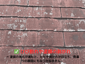 屋根は住宅の中でも特に雨や直射日光の影響を受けやすく、劣化が早く進む部分です。