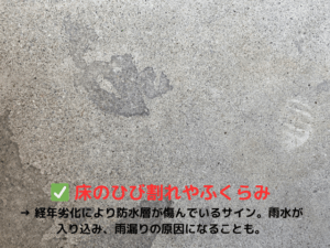 長年の雨風や紫外線によって防水層は劣化し、ひび割れや水たまり、浸水の原因になります。